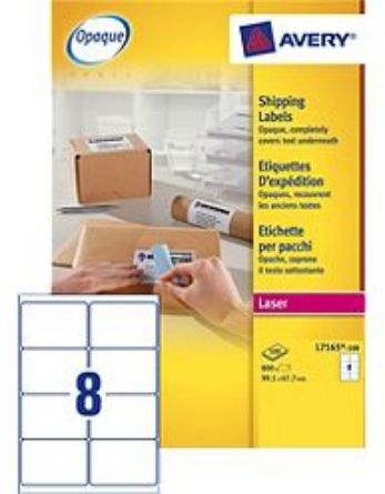 Commandez une pochette d'étiquettes adhésives prédécoupées référence L7165-100 de la marque Avery ou autre marque si équivalence de taille. Cette pochette d'adhésif est un produit courant disponible dans la plupart des papeteries ou en ligne.